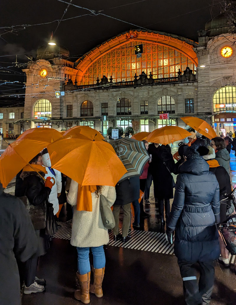 Auch wir Basler Sorores sind seit 2017 mit dabei und haben wieder eine Reihe von Aktionen auf Social Media gestartet, einen Informationsstand am Rümelinsplatz betrieben und verschiedene Gebäude in und um Basel orange beleuchtet.